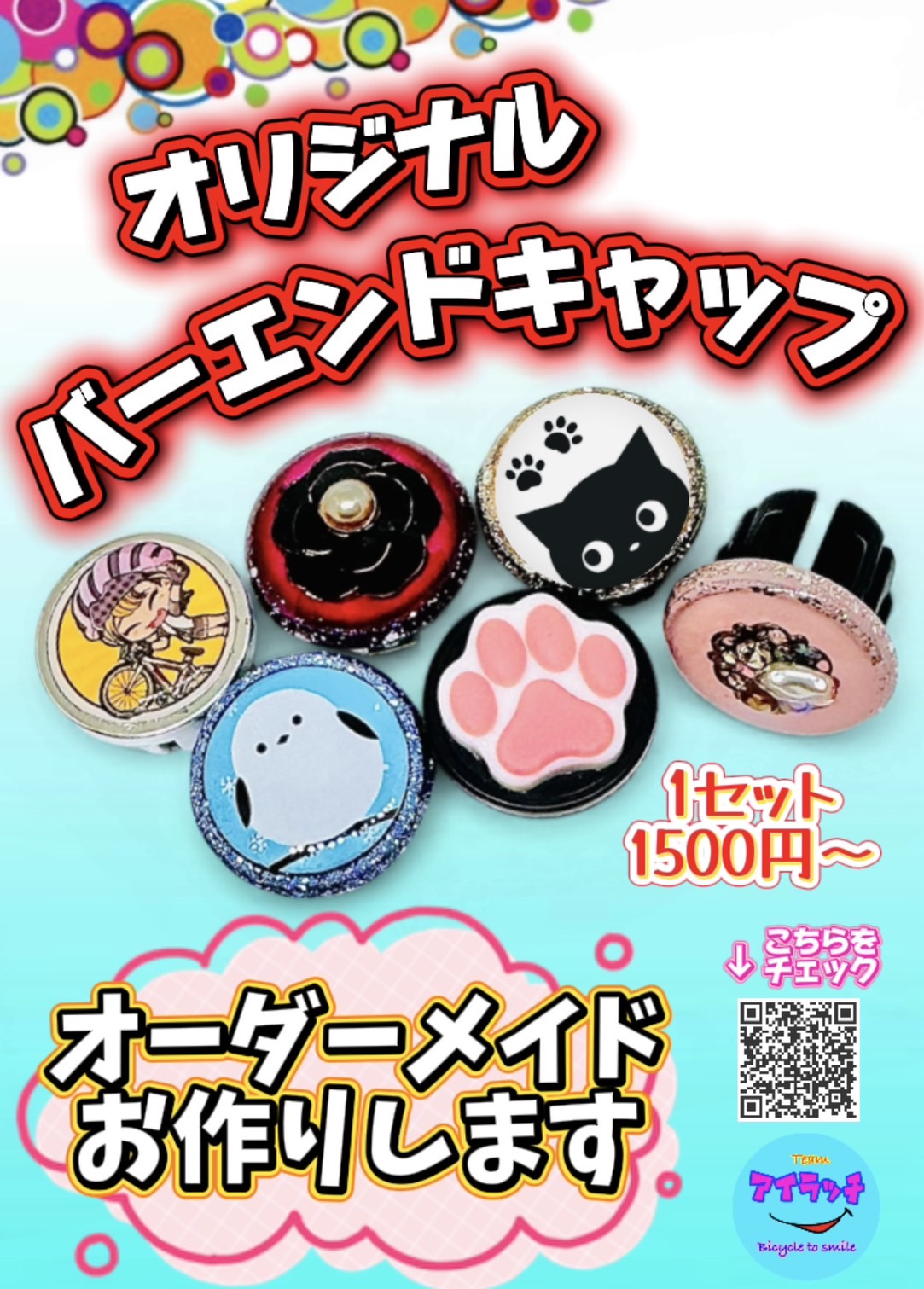今年は物販もございます!アイラッチさんのバーエンドキャップやキコリンさんのサイクルキャップも出店!オリジナルアイテムをぜひゲットしてってください。